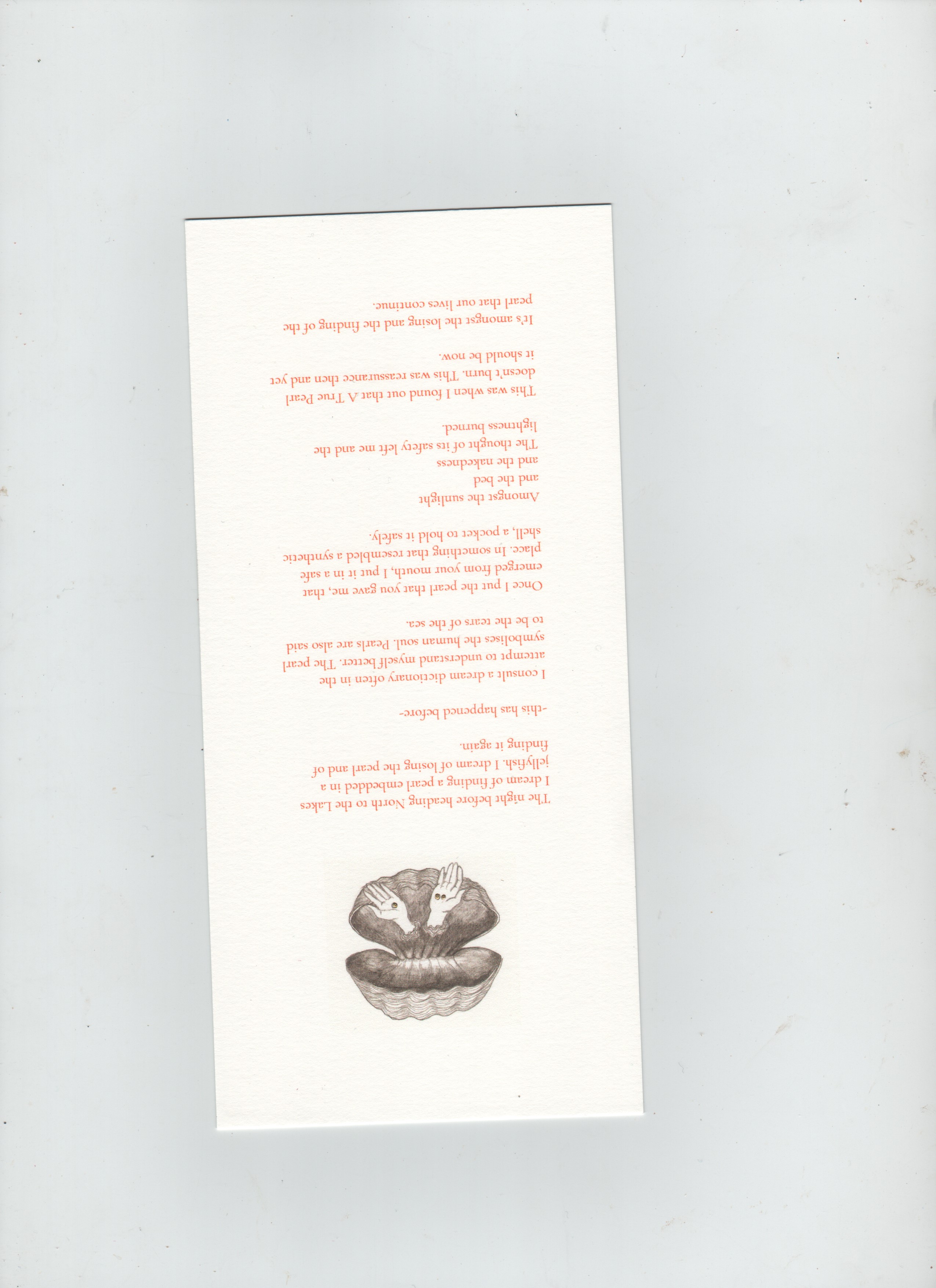 Edition of 200 prints with illustration, text and hand gilded pearls. Printed on cream coloured heavy card with accompanying envelope.